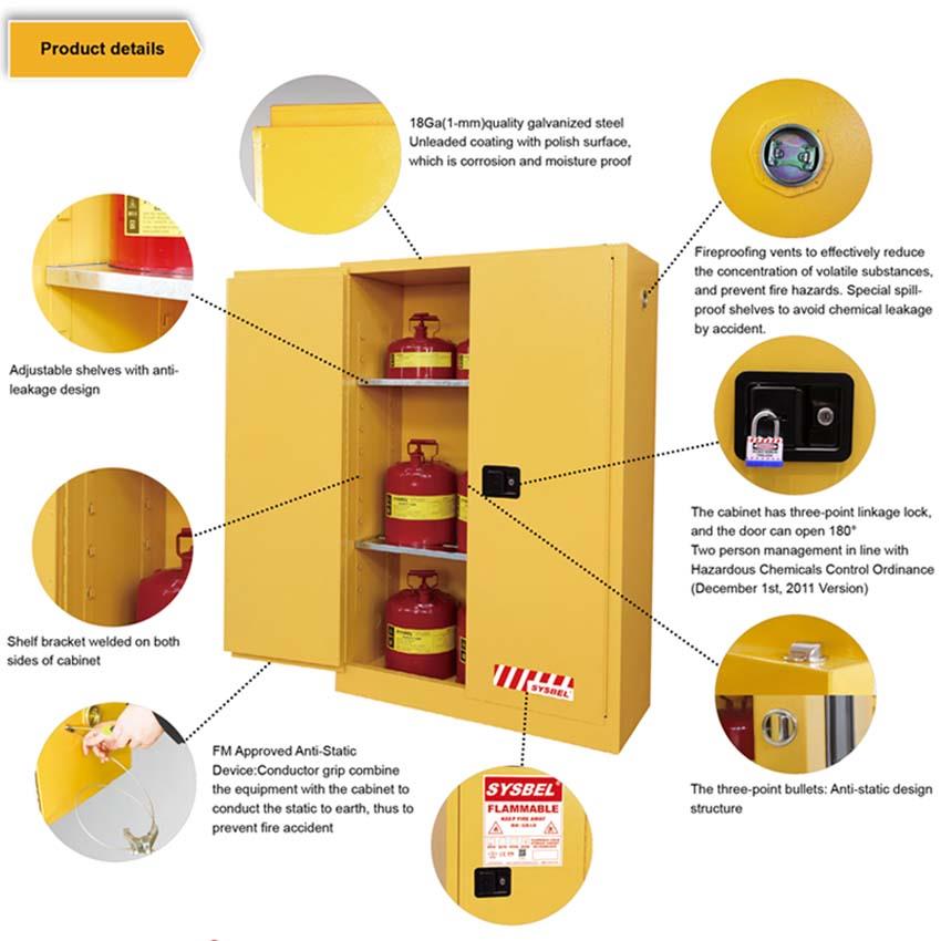 SYSBEL Eldfimt Skápar til að geyma eldfimar vökvar (lágmark og miðgildi flasspunktur vökva1, flasspunktur <37,8 ℃),="" draga="" úr="" hættu="" á="" eldi="" til="" að="" tryggja="" öryggi="" lífs="" og="">37,8>